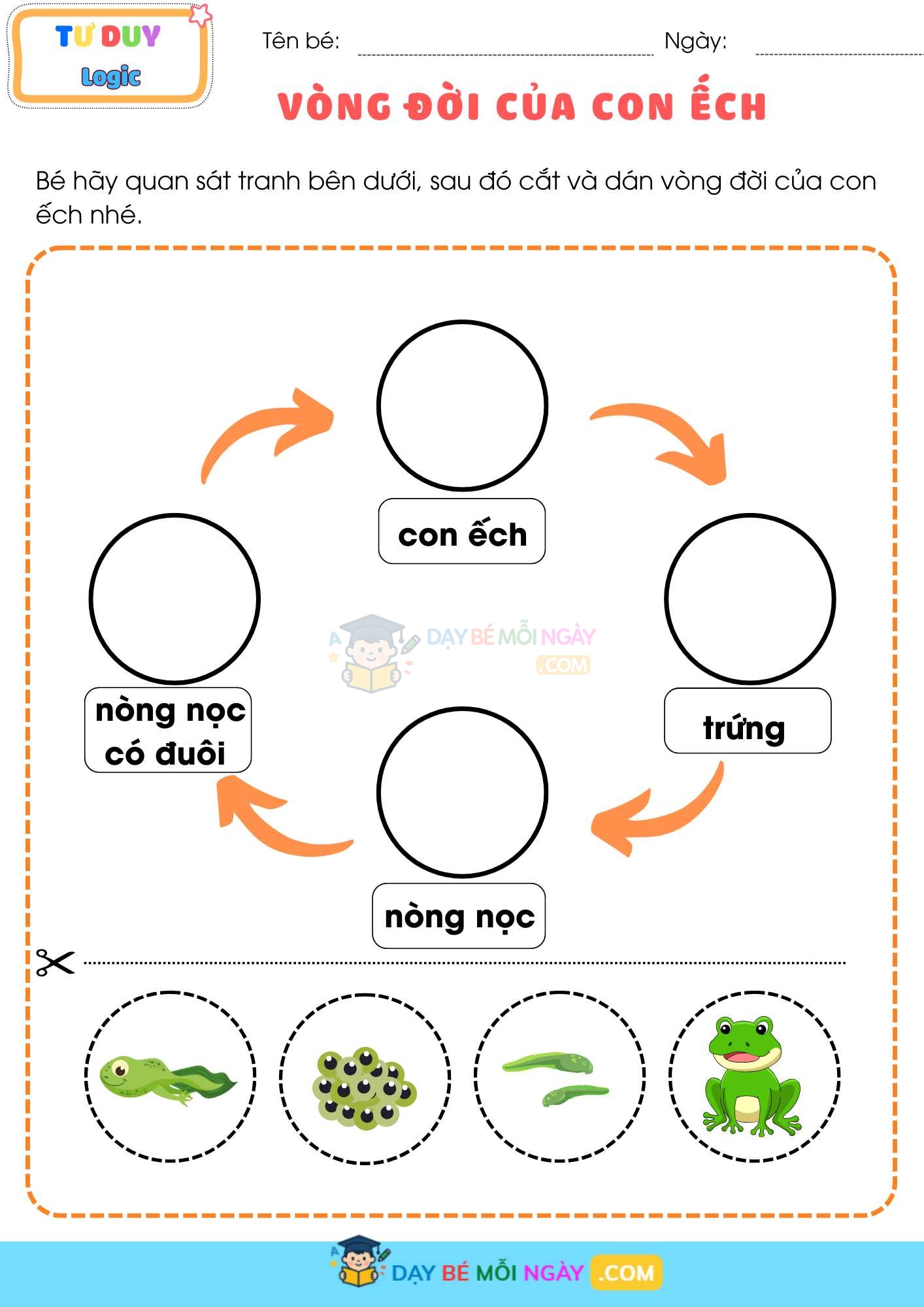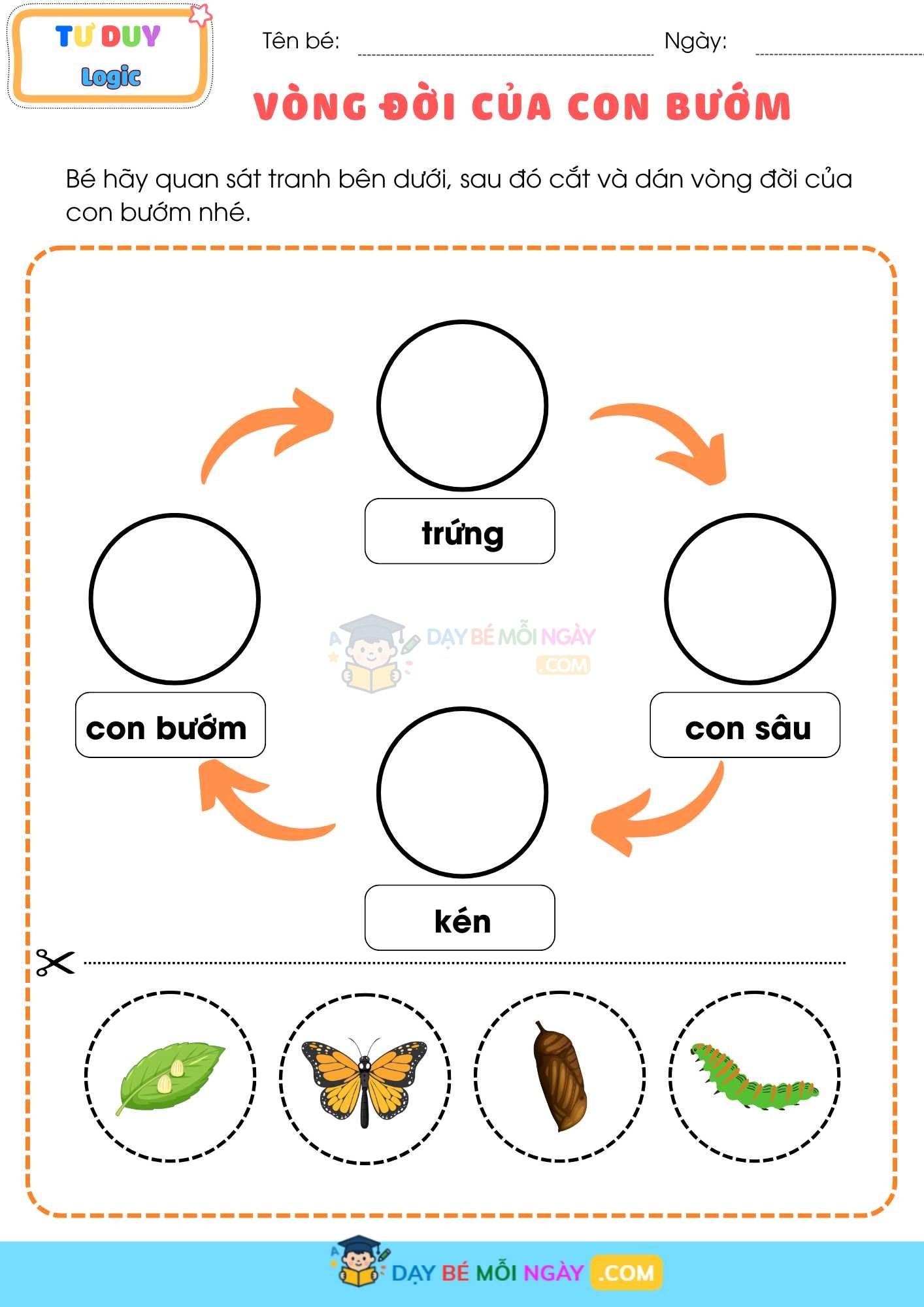 Bạn muốn con hiểu về vòng đời sinh vật nhưng không muốn chỉ cho con xem tranh trong sách giáo khoa? Bộ phiếu CẮT DÁN – Vòng đời của sinh vật sẽ biến bài học khô khan thành một “tiết thực hành” cực vui:
