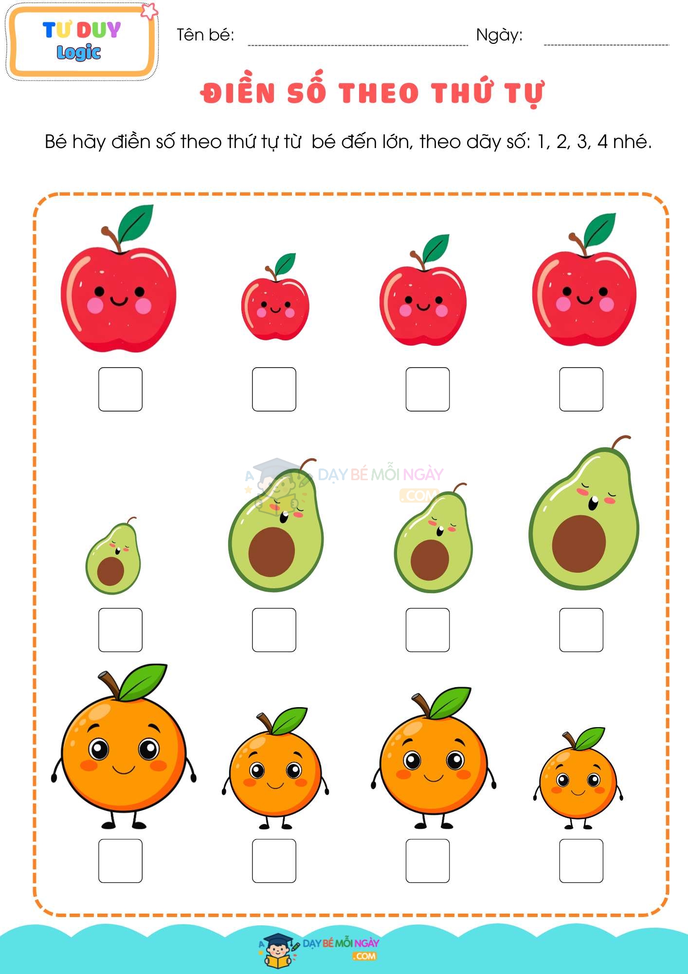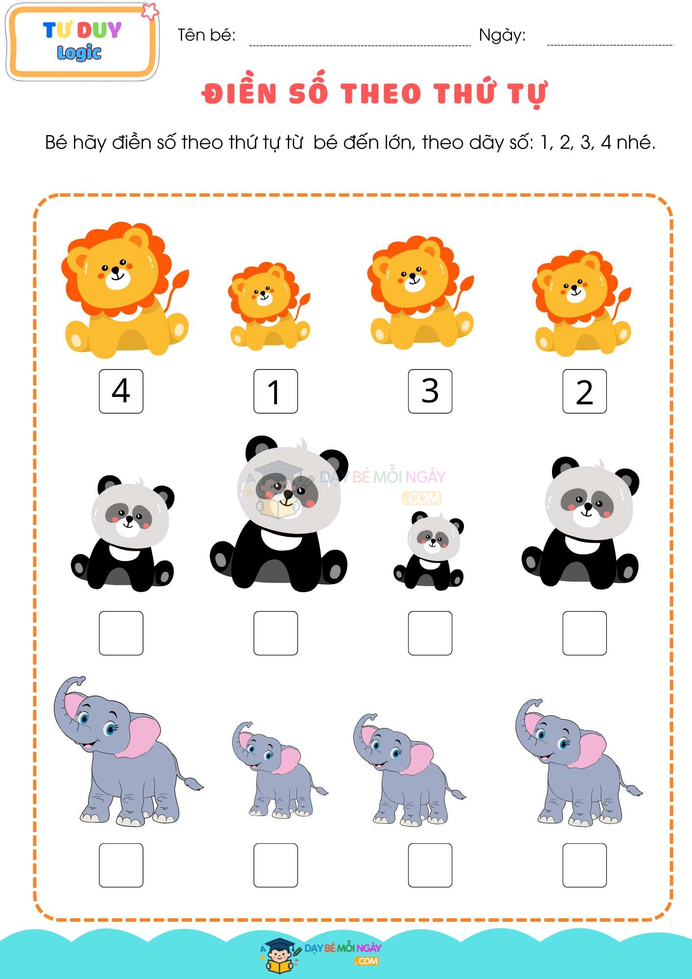 ✅ Xếp theo trình tự: từ bé đến lớn