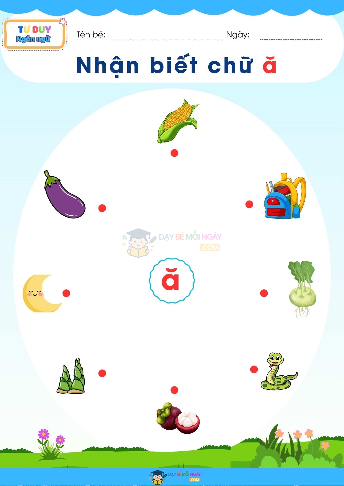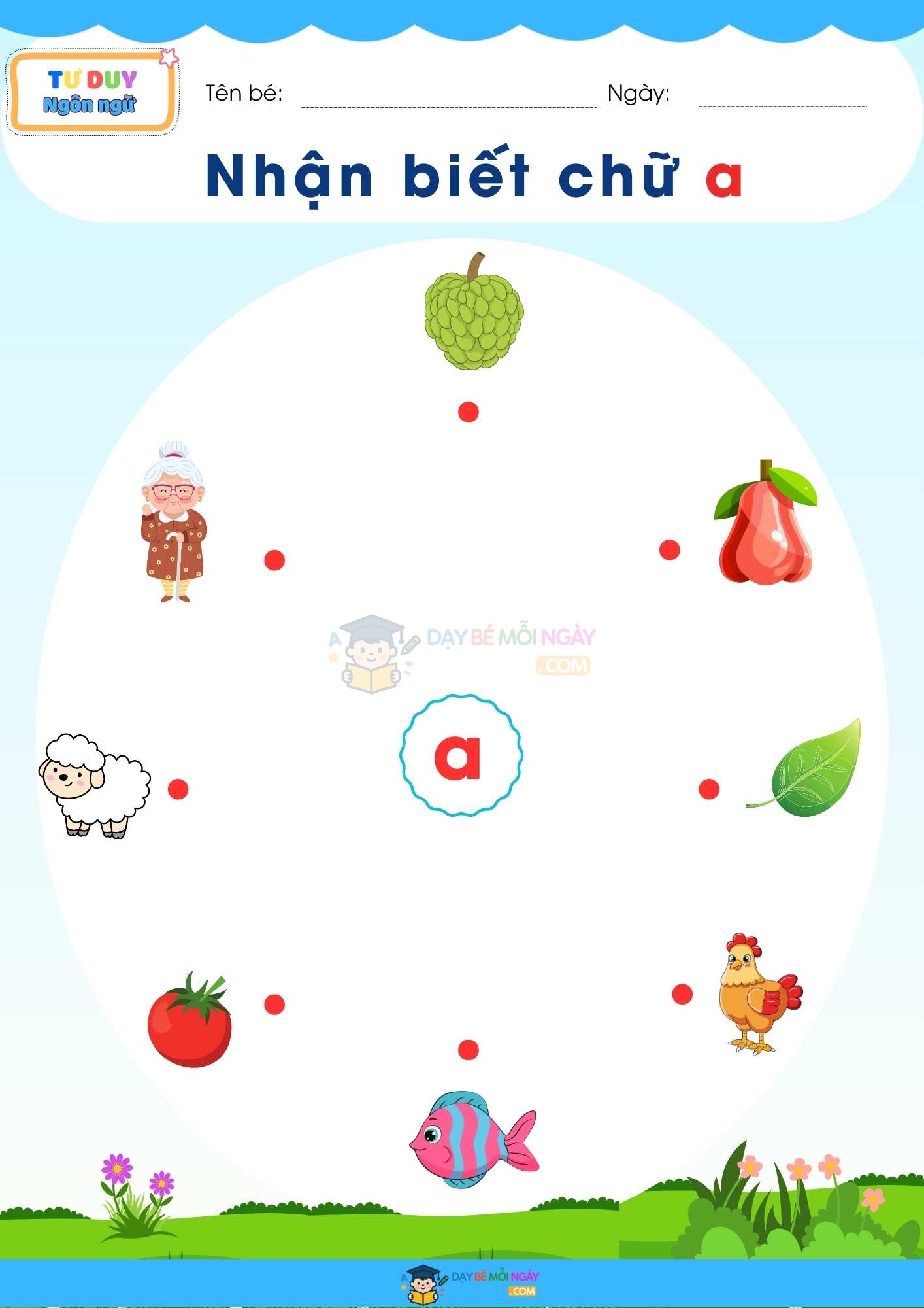 29 chủ đề chữ cái, mỗi chữ = 1 trang nhận biết trung tâm
