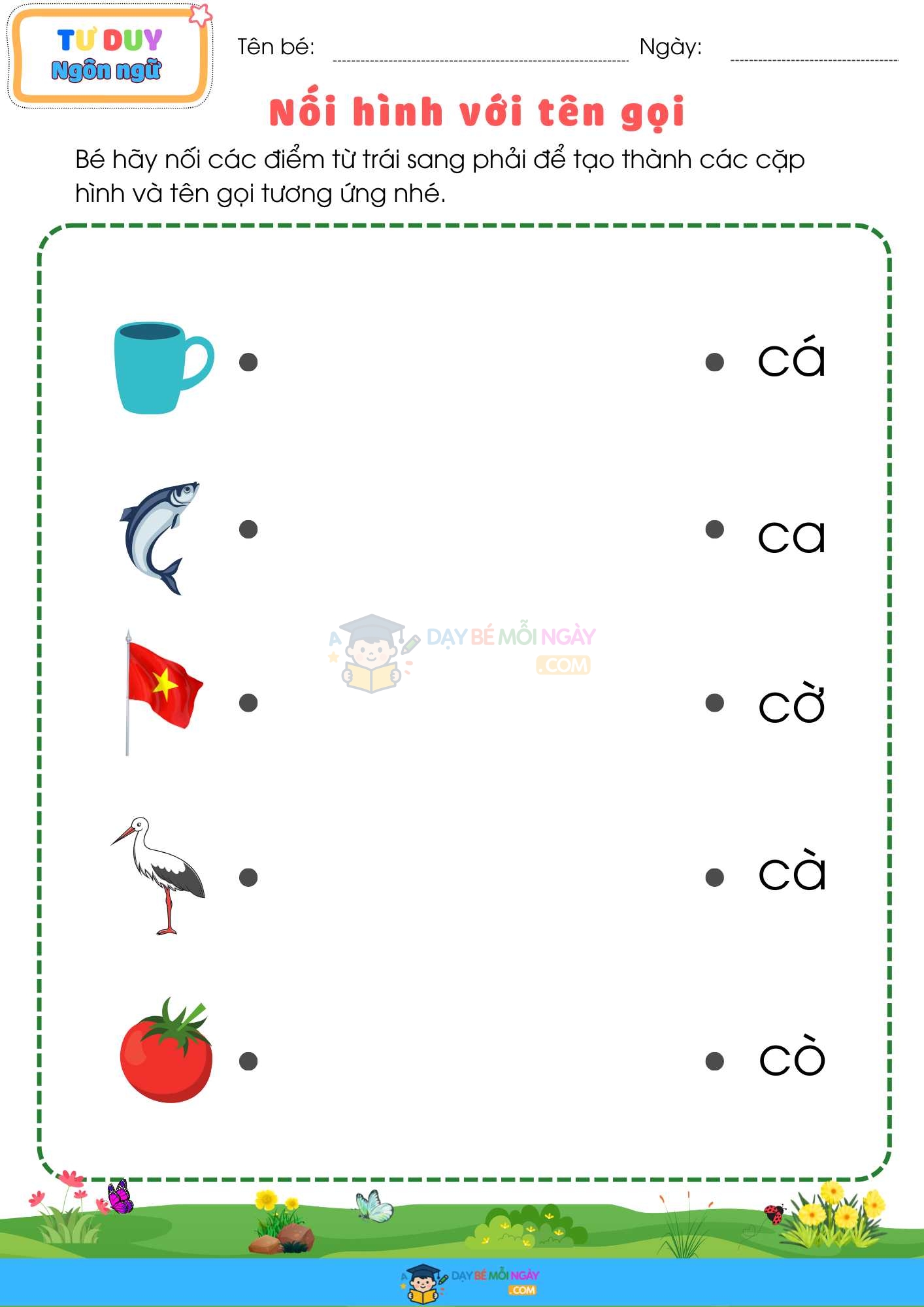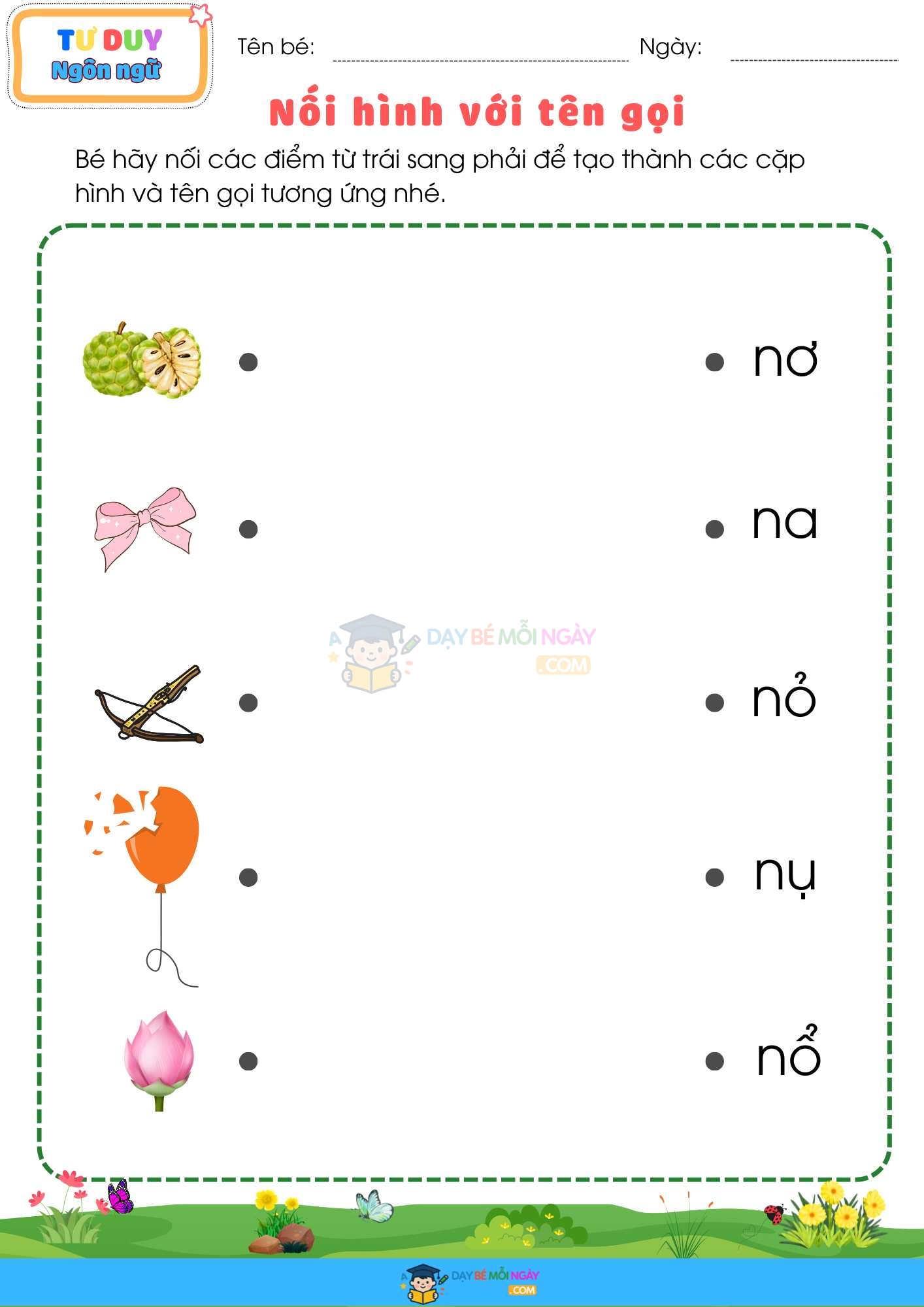 Bộ phiếu bài tập PDF “Tư duy ngôn ngữ – Nối hình với tên gọi” được thiết kế riêng để gỡ đúng “nút thắt” đó cho bố mẹ và giáo viên.