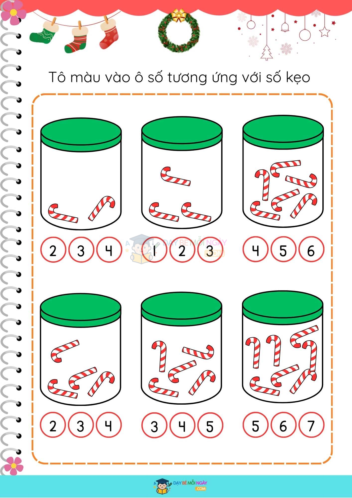 Điền số theo thứ tự với hình ảnh kẹo gậy/lọ kẹo siêu trực quan – bé nhìn là hiểu