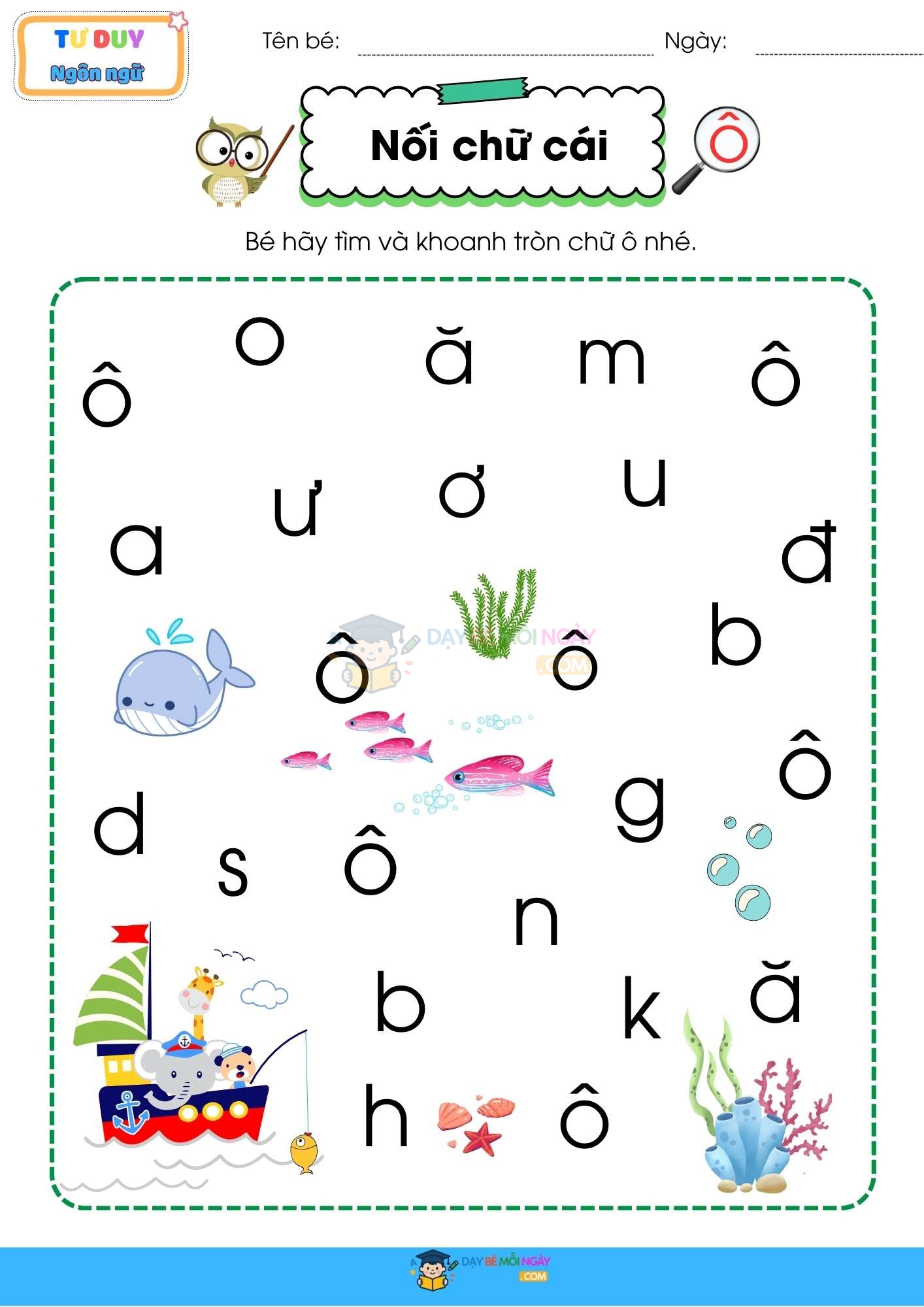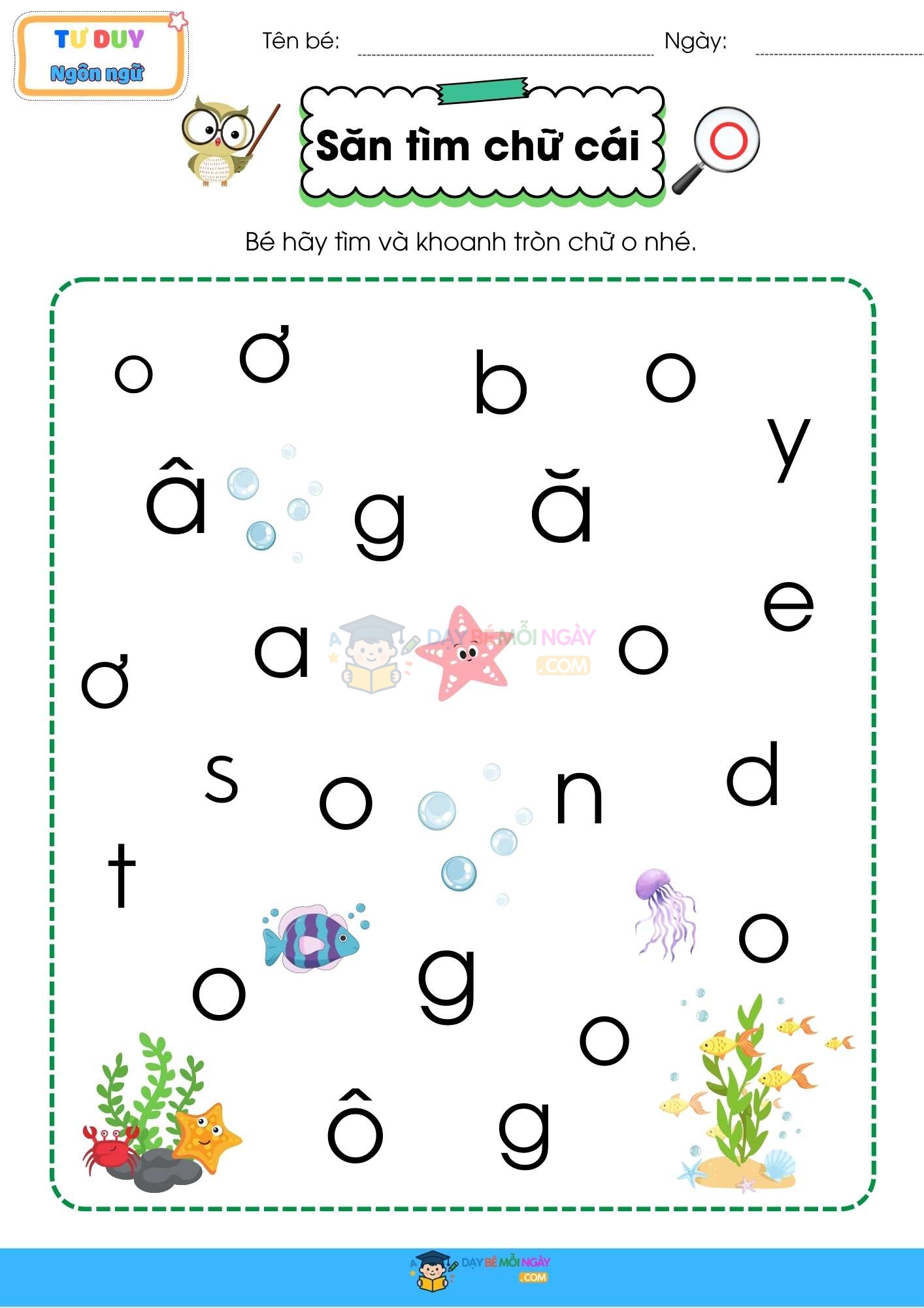 File tài liệu “Săn tìm 29 chữ cái” được thiết kế như một cuốn sổ tay khám phá, nơi 29 chữ cái tiếng Việt xuất hiện lẫn trong tranh minh họa dễ thương. Nhiệm vụ của bé là tìm, khoanh tròn những chữ cái được yêu cầu – vừa chơi, vừa ghi nhớ bảng chữ cái một cách tự nhiên.