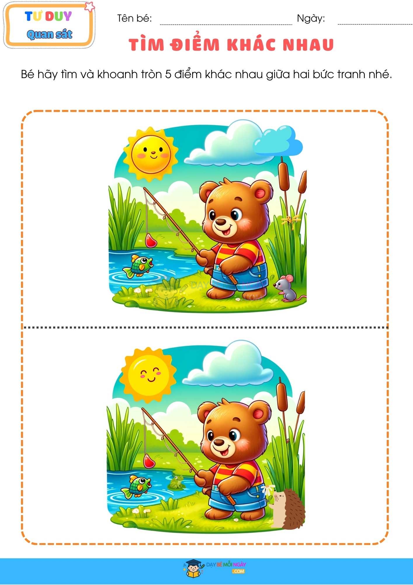 Bộ tài liệu “TÌM ĐIỂM KHÁC NHAU GIỮA HAI BỨC TRANH” chính là lựa chọn siêu hợp cho trẻ mầm non/tiền tiểu học với cấp độ từ dễ đến khó 🌈